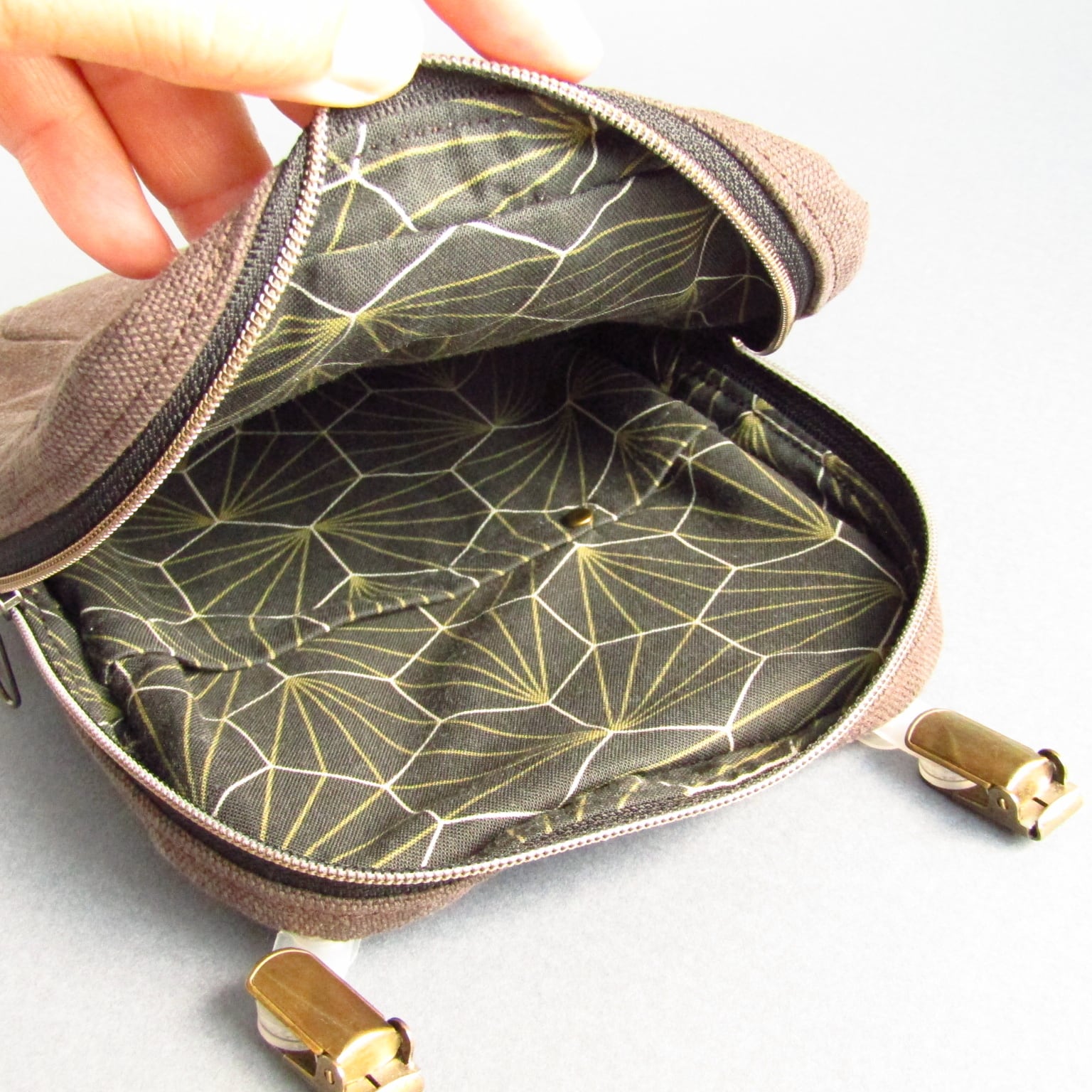 手ぶら愛好家専用 甲羅ぽっけウエストバッグ*グレーブラウン*大人の移動ポケット