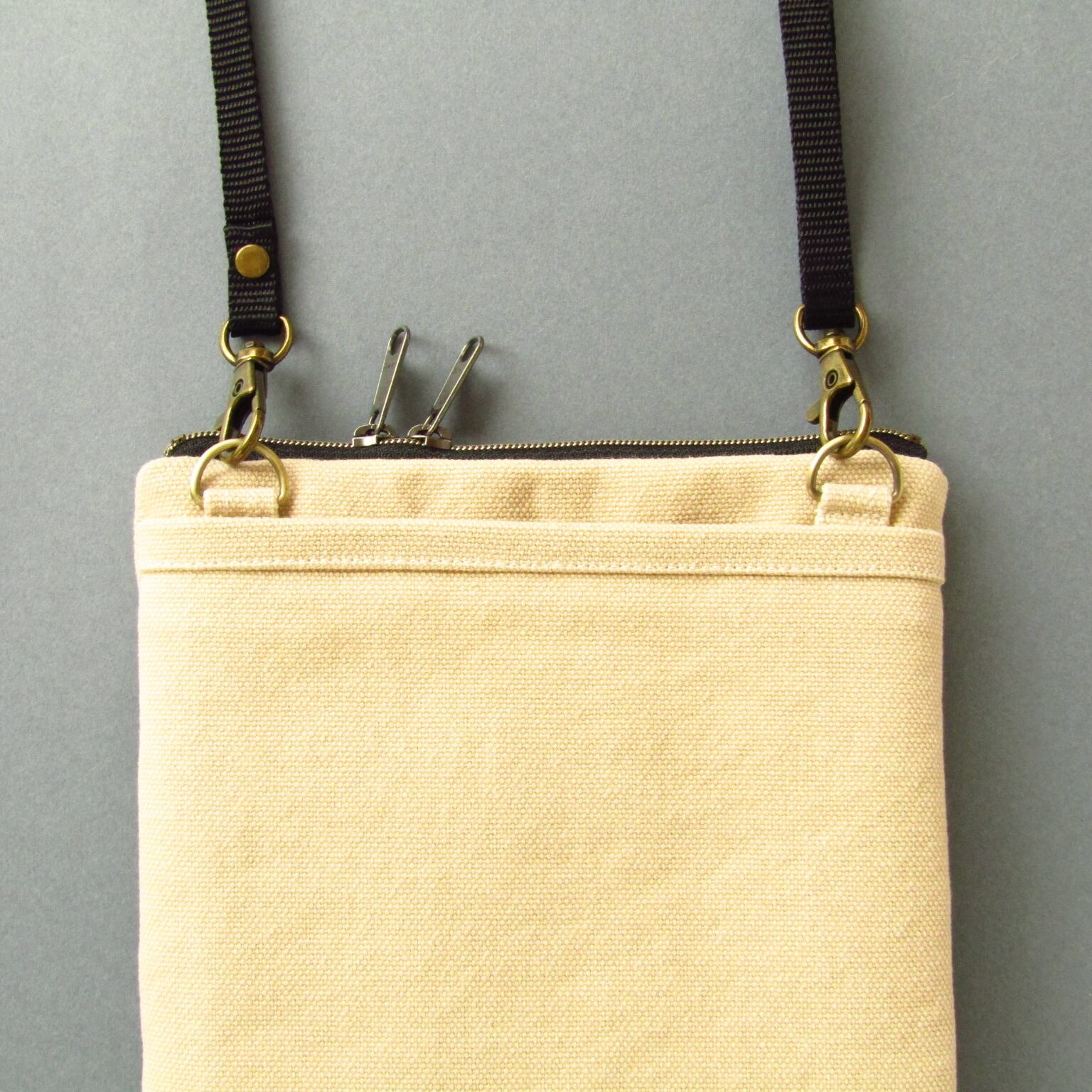 Wスライダーファスナーは左右どちらで斜め掛けしてもファスナーの引手の位置に迷うことがありません。