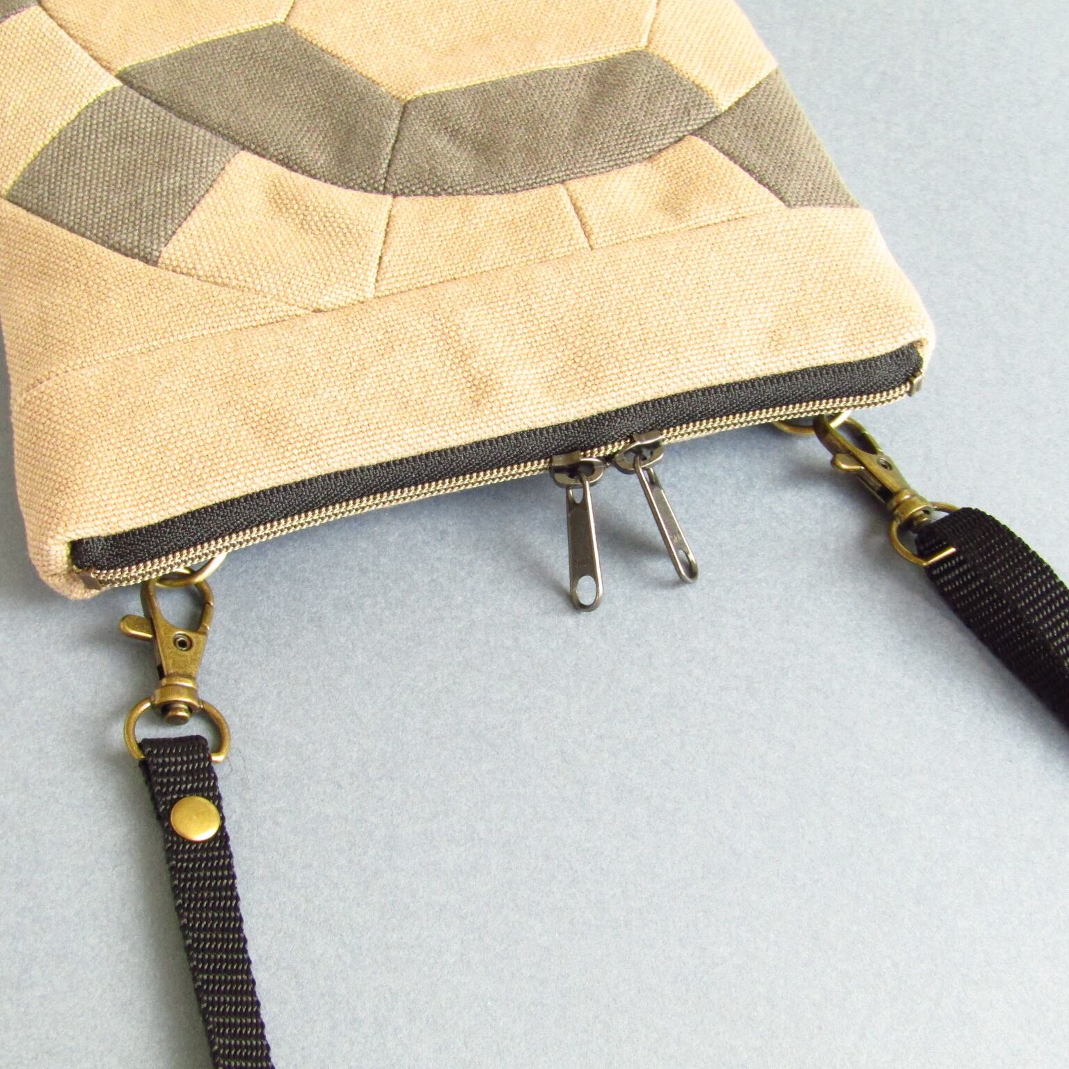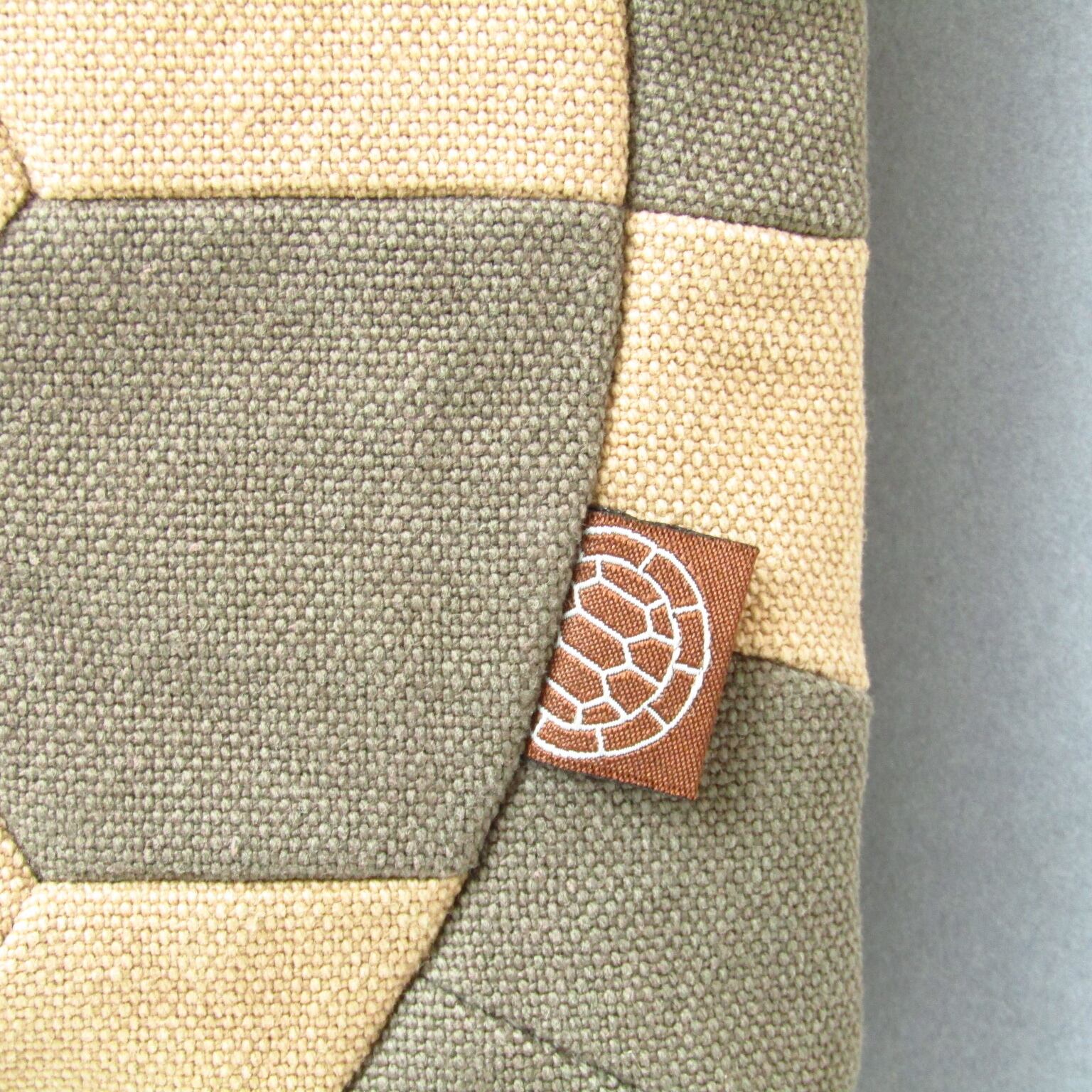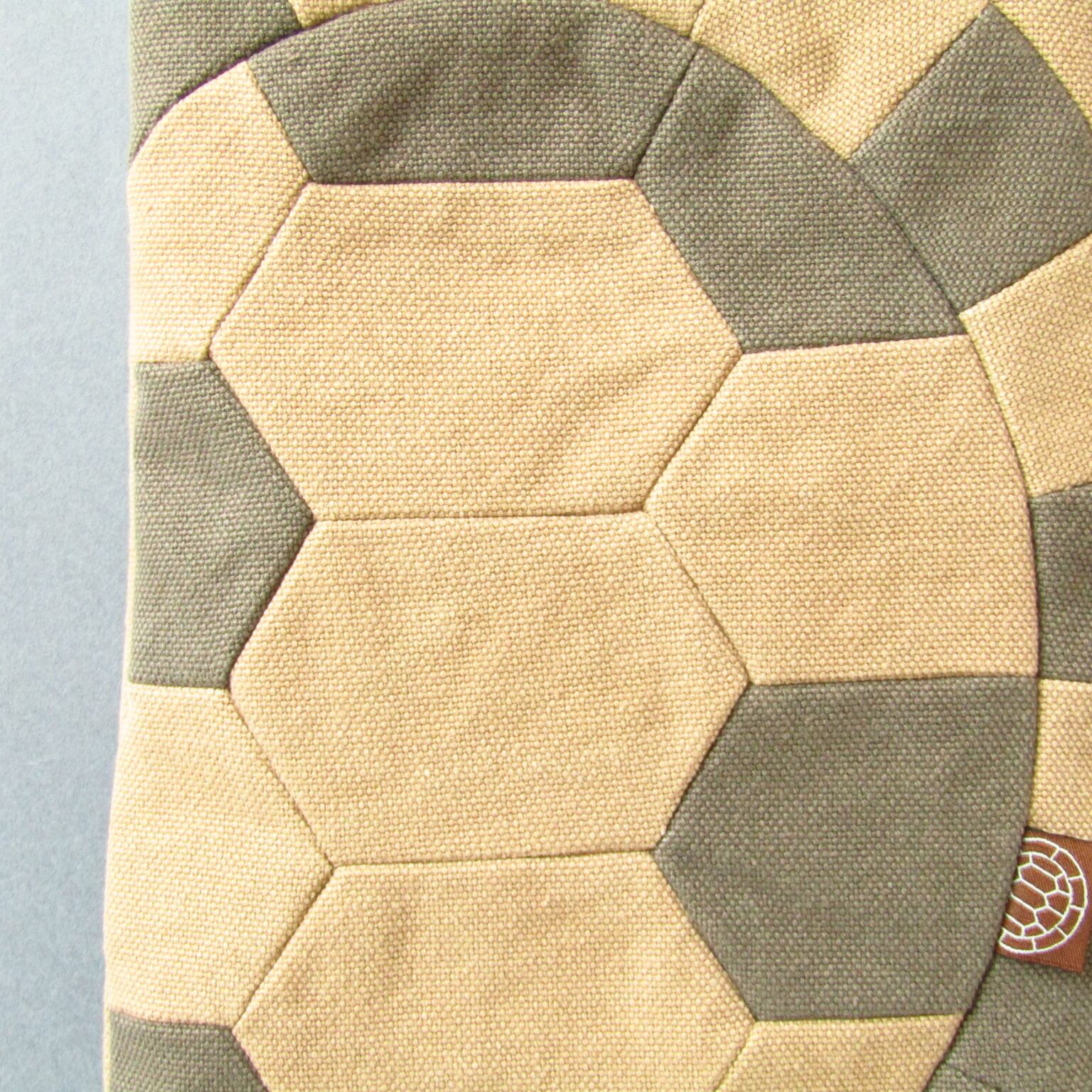 2色の帆布をランダムに配置し甲羅を浮きだたせて亀感をアップしました。