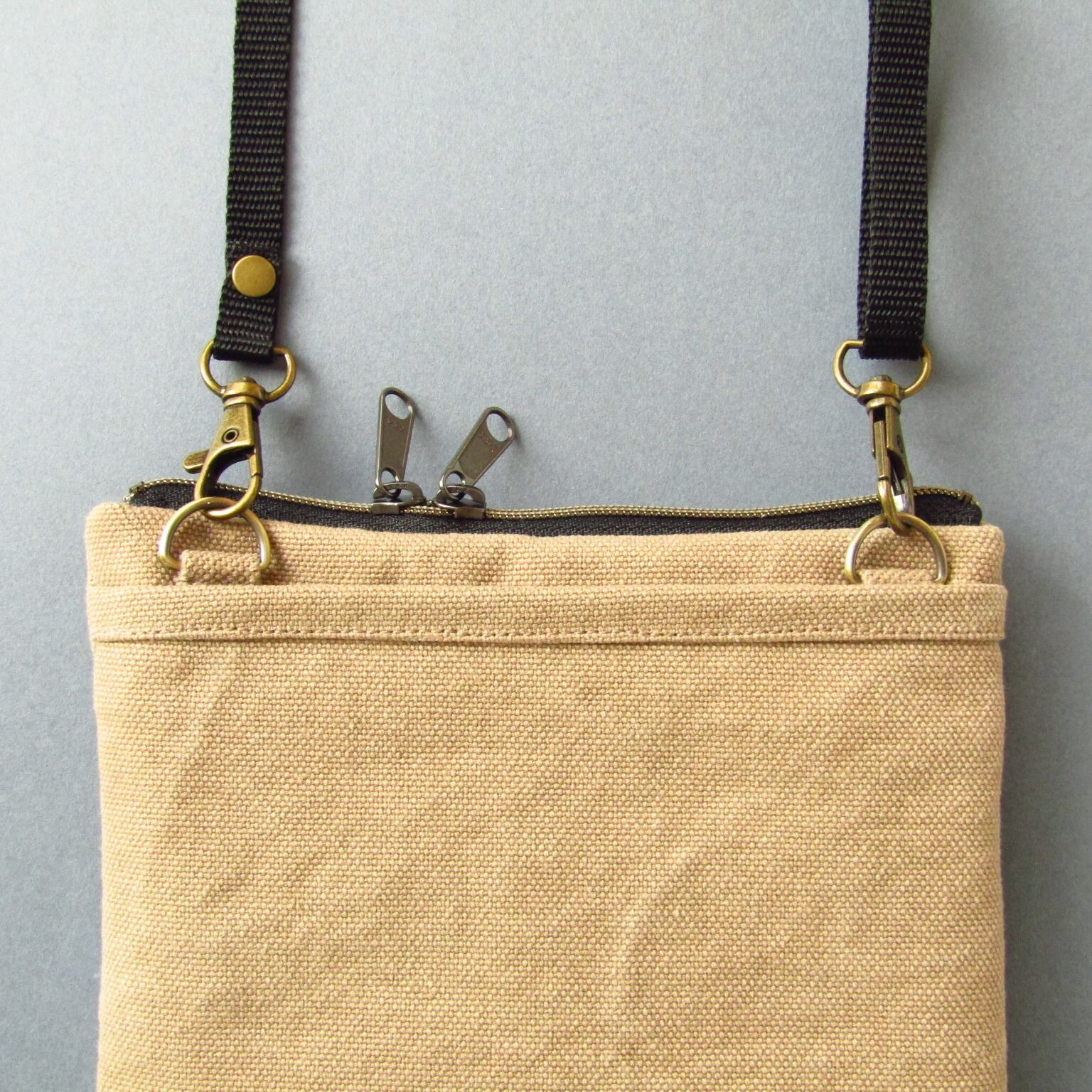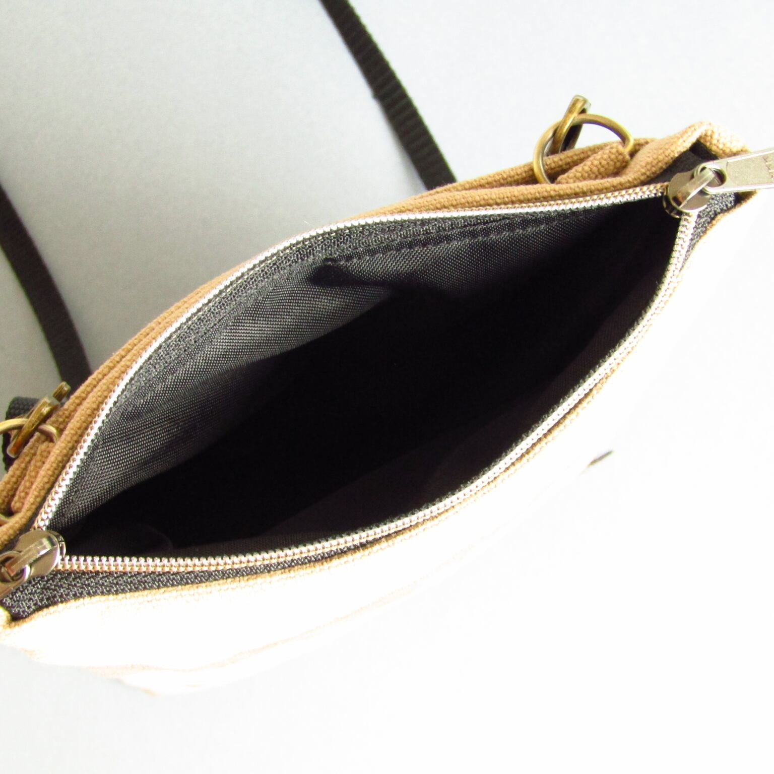 Wスライダーファスナーは左右どちらで斜め掛けしてもファスナーの引手の位置に迷うことがありません。