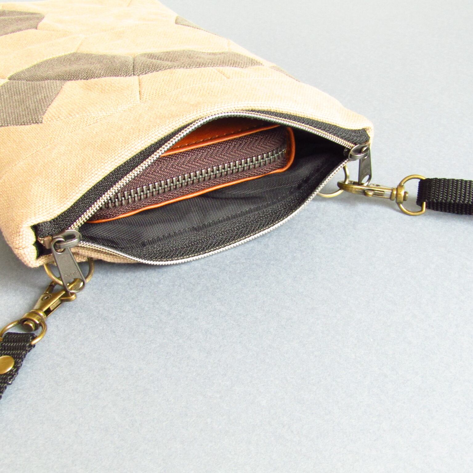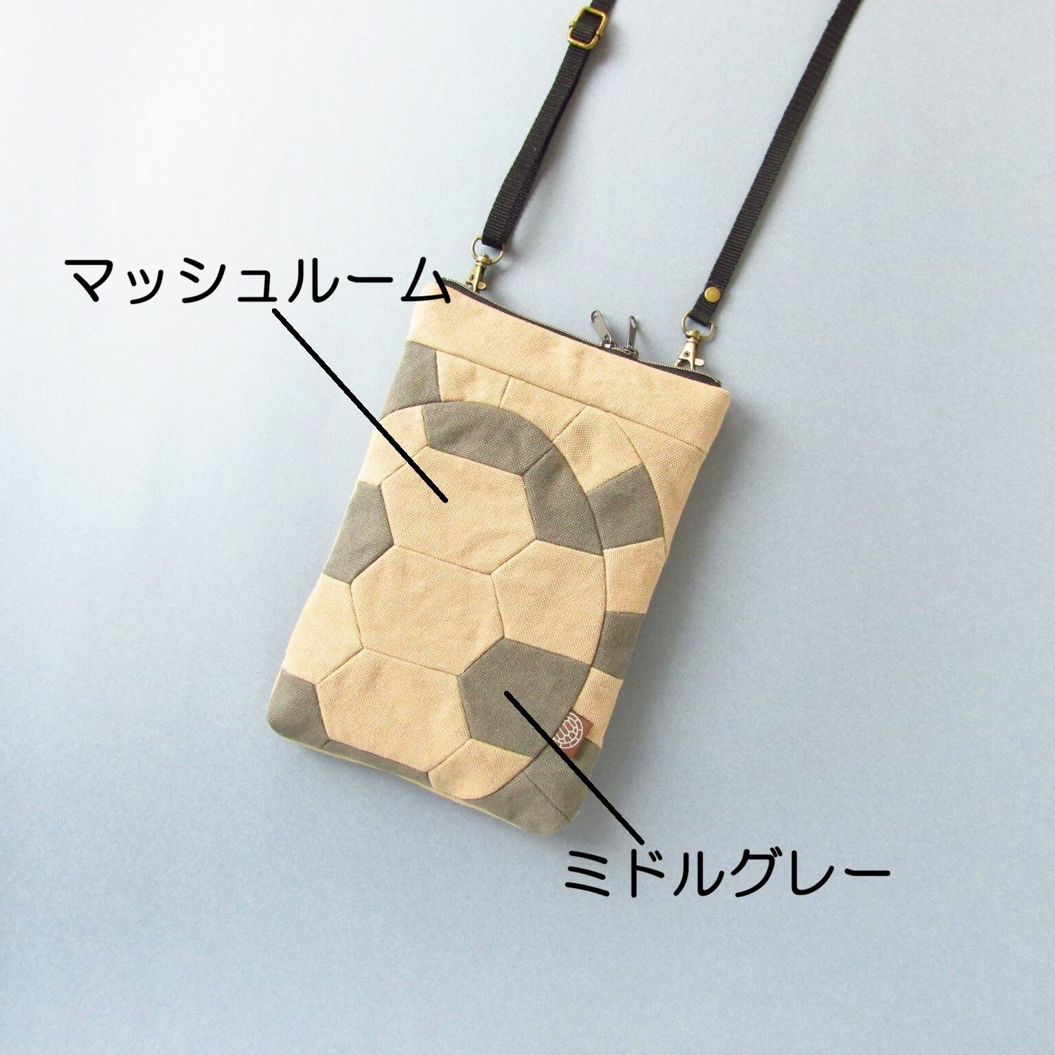 甲羅デザイン サコッシュ 2color Mix*マッシュルーム × ミドルグレー* ショルダーバッグ〈亀甲〉