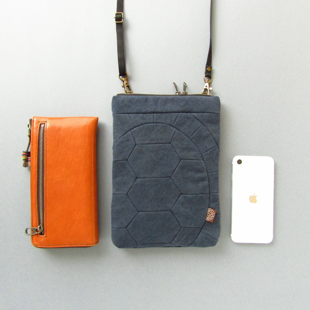 亀の甲羅からデザインした帆布のサコッシュです。