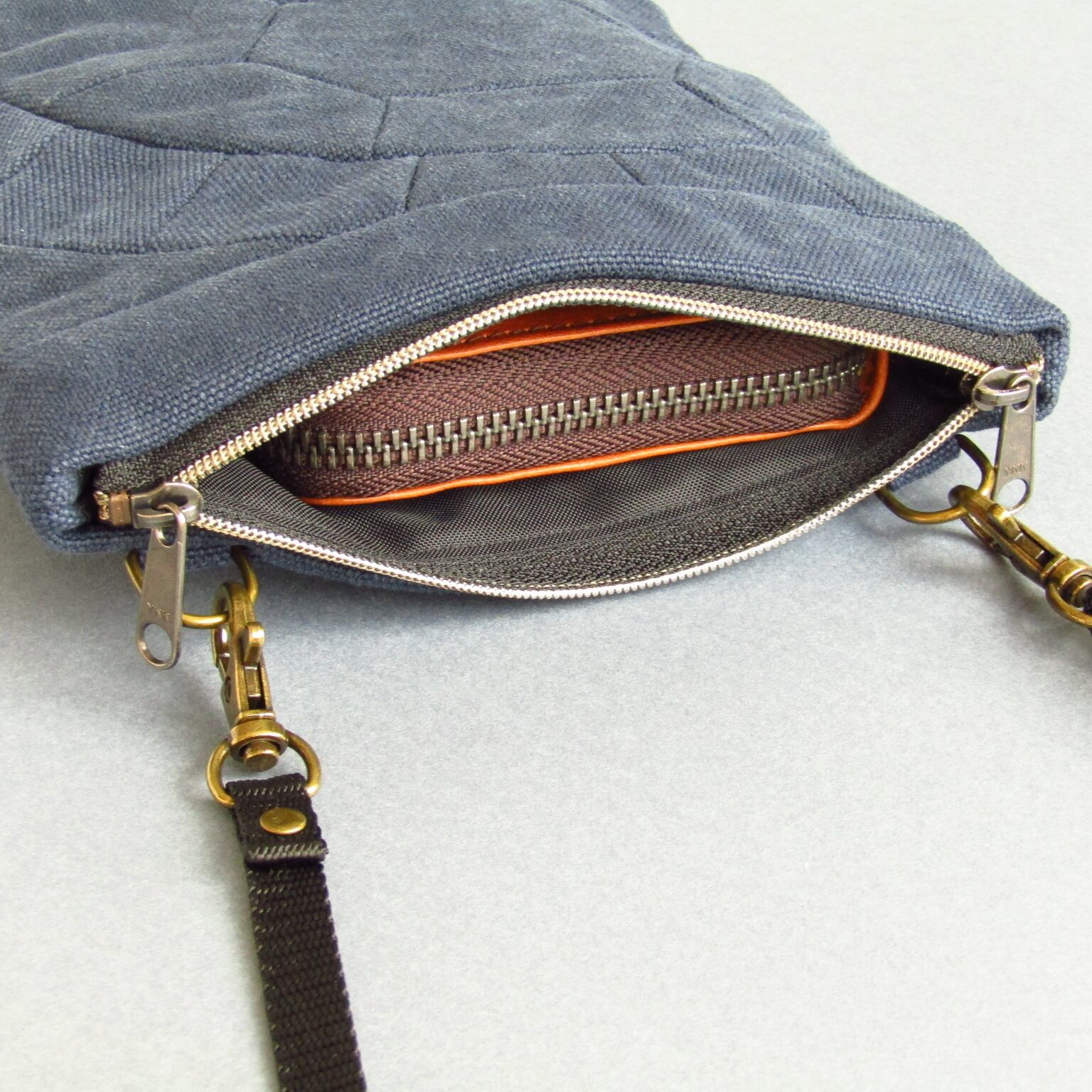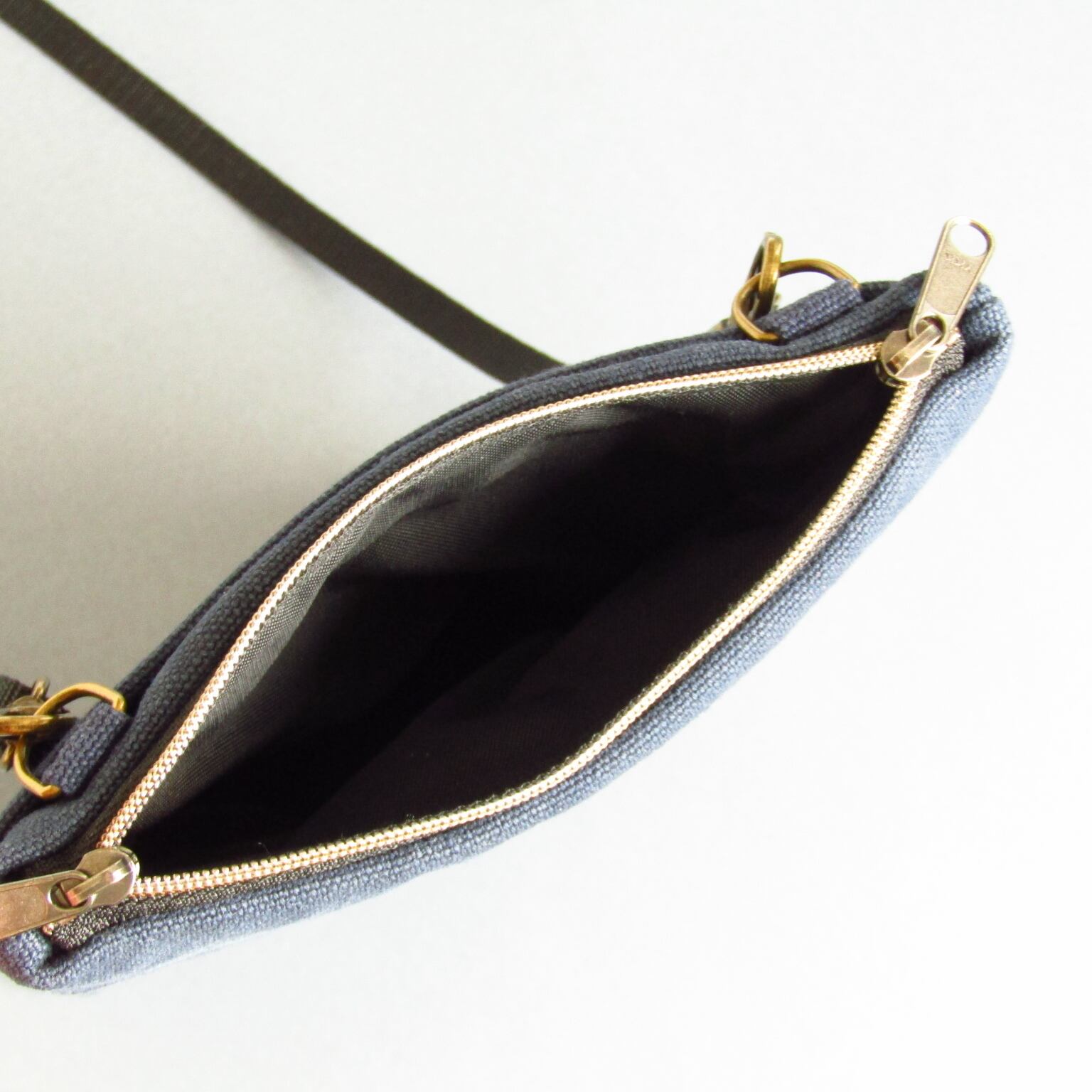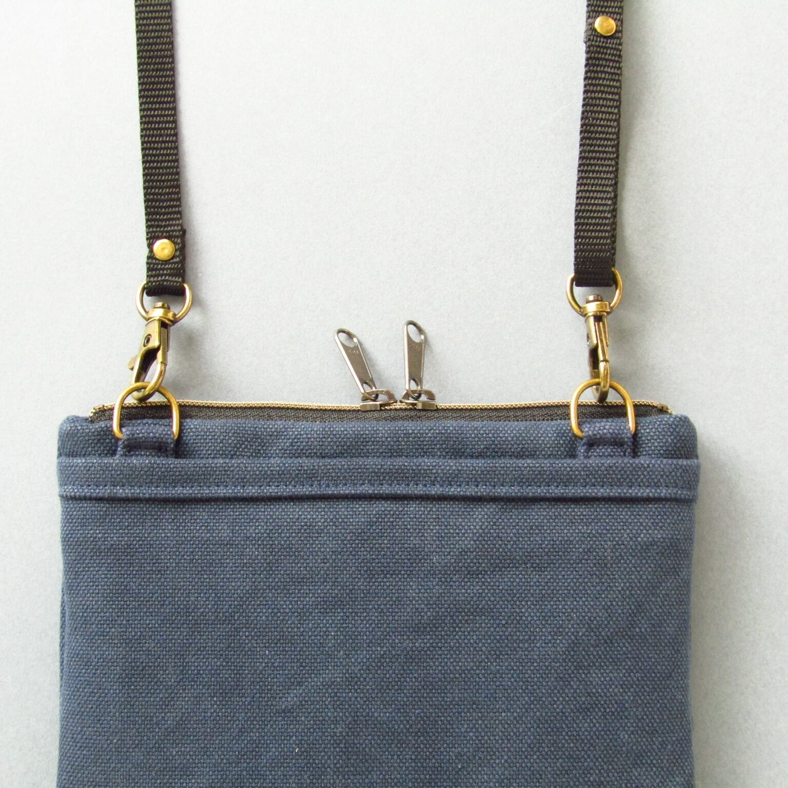Wスライダーファスナーは左右どちらで斜め掛けしてもファスナーの引手の位置に迷うことがありません。