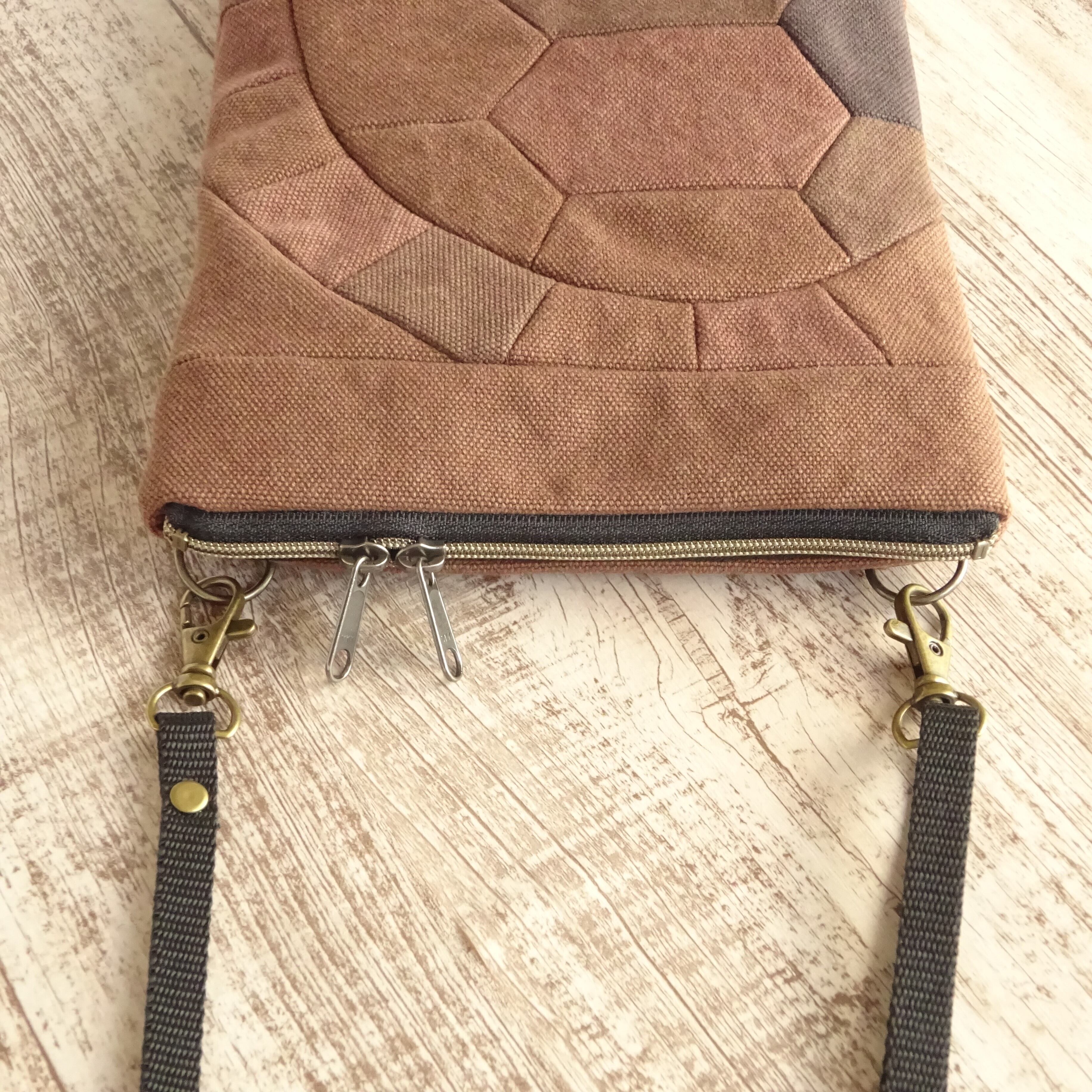 亀の甲羅モチーフのサコッシュです。