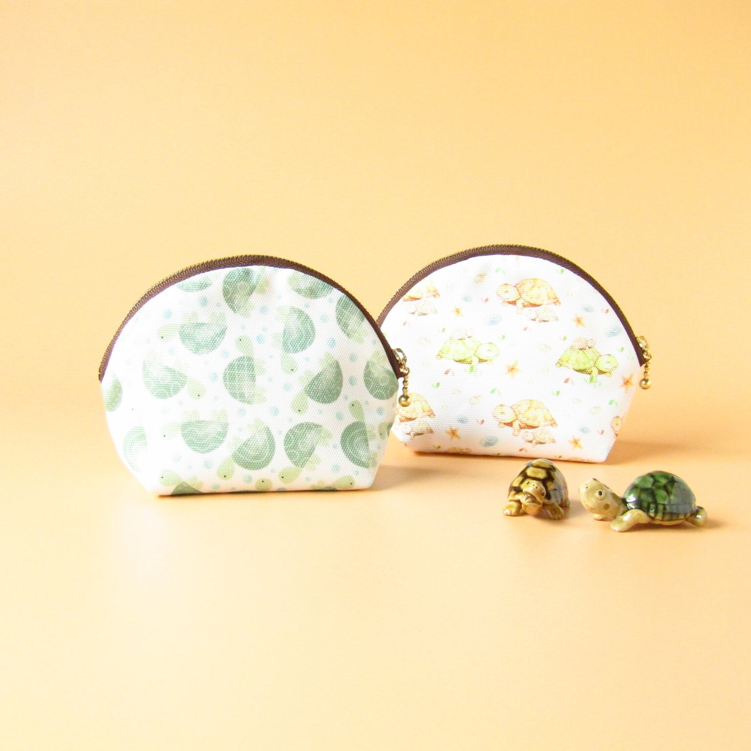 泡ぷくぷく亀さん*セミサークルポーチ 撥水ポリエステル生地